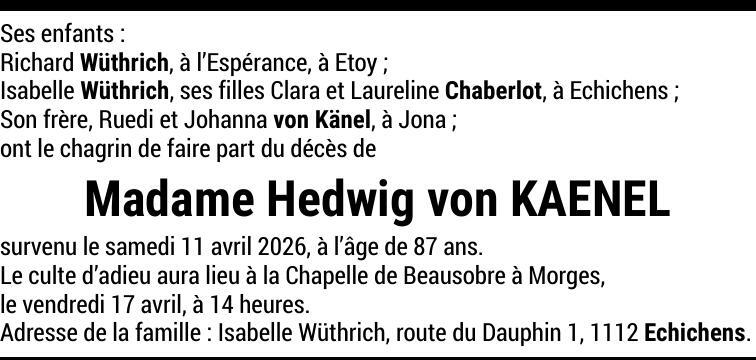 Madame Hedwig van KAENEL
