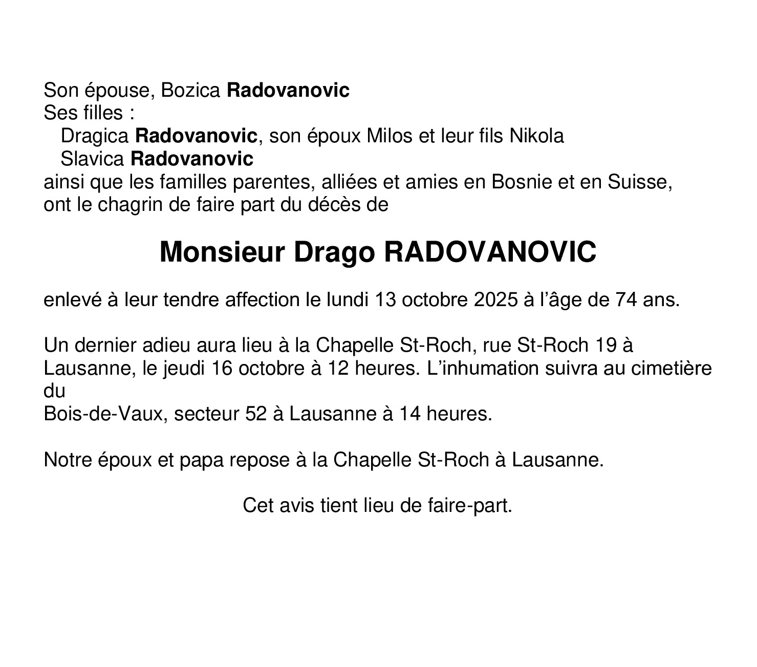 Monsieur Drago RADOVANOVIC