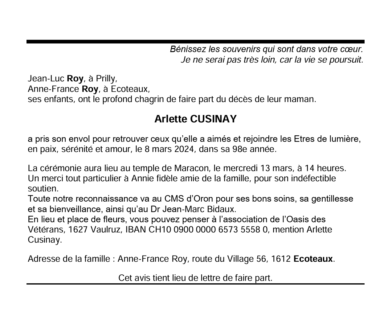 Avis mortuaires / Remerciements