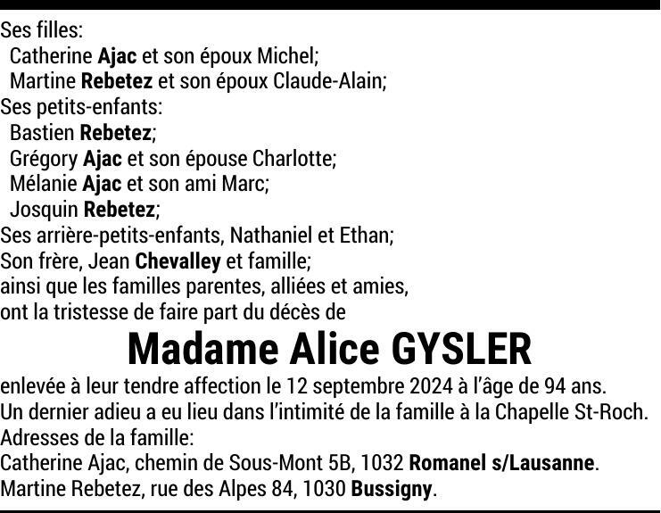 Madame Alice GYSLER
