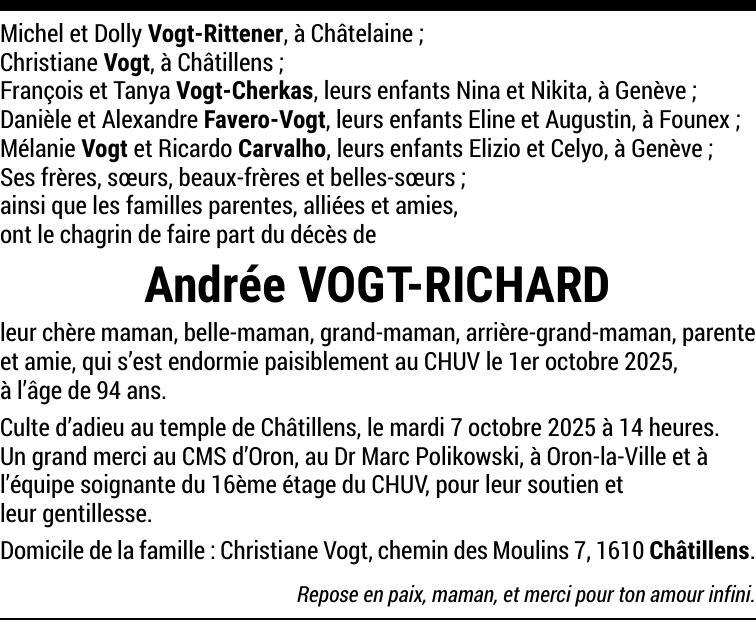 Madame Andrée VOGT-RICHARD