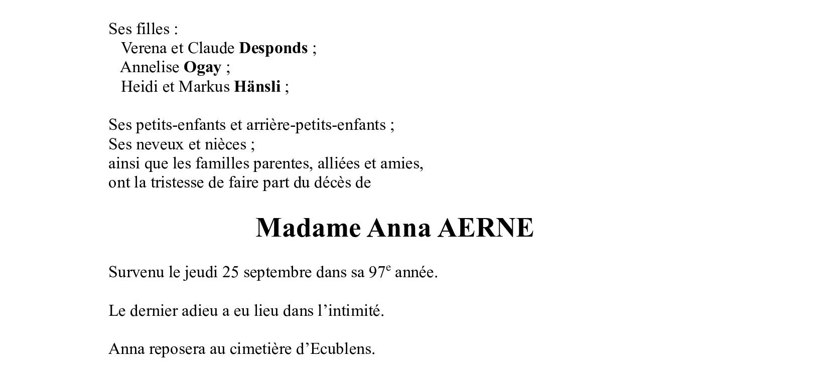 Madame Anna AERNE