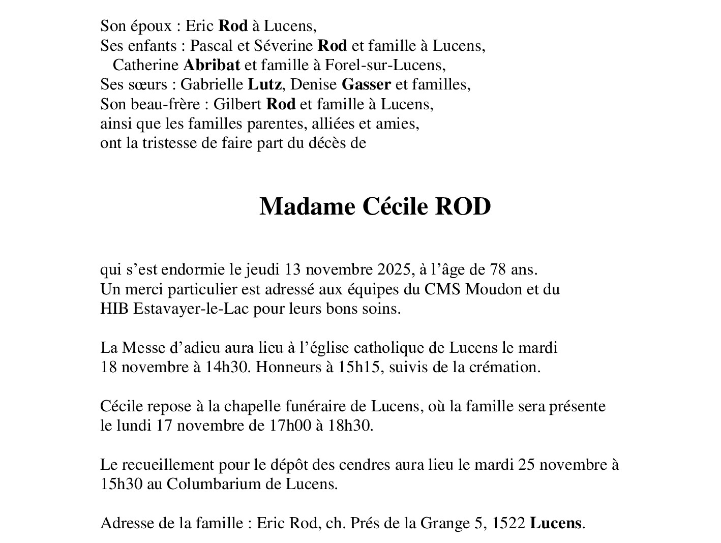 Madame Cécile ROD
