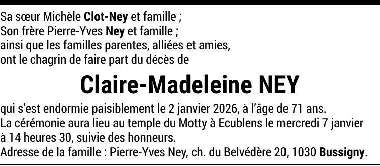 Madame Claire-Madeleine NEY