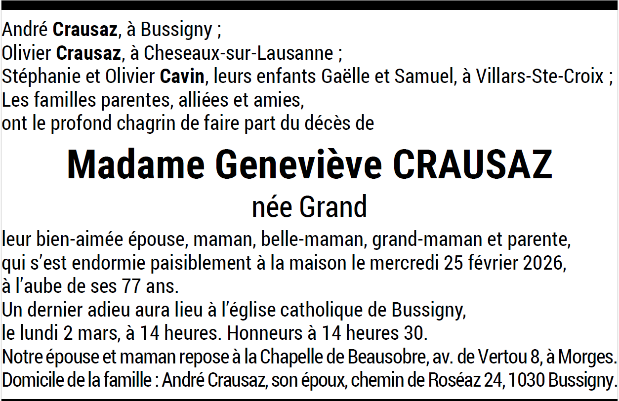 Madame Geneviève CRAUSAZ