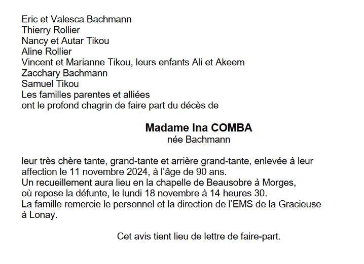 Madame Ina COMBA