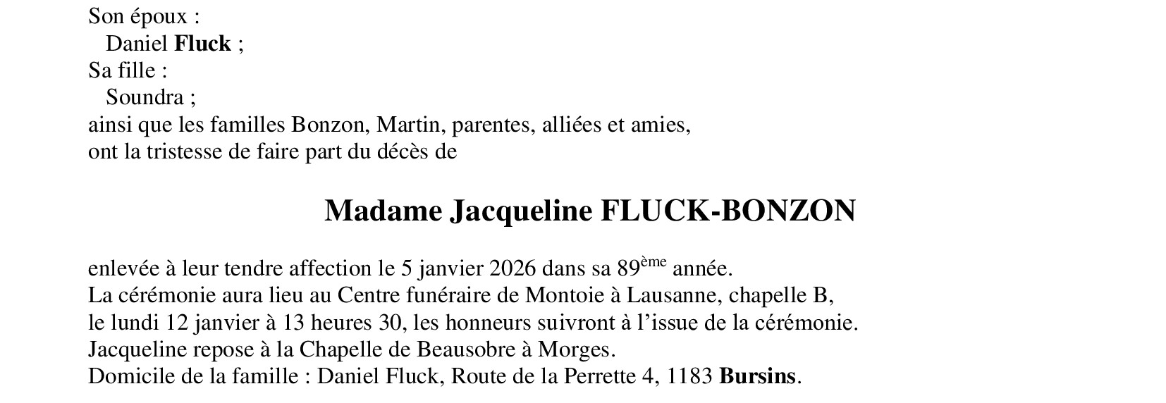 Madame Jacqueline FLUCK