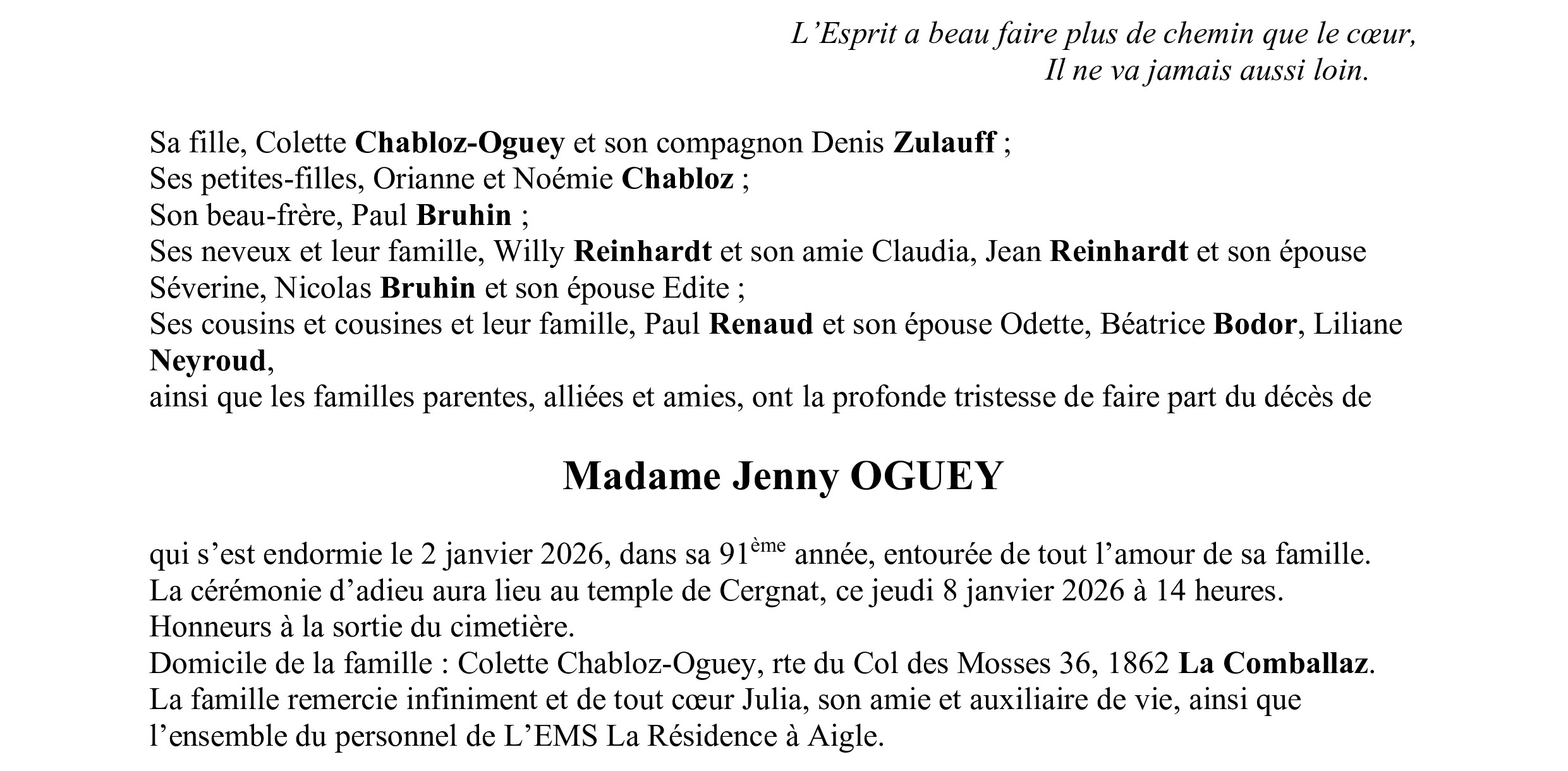 Madame Jenny OGUEY