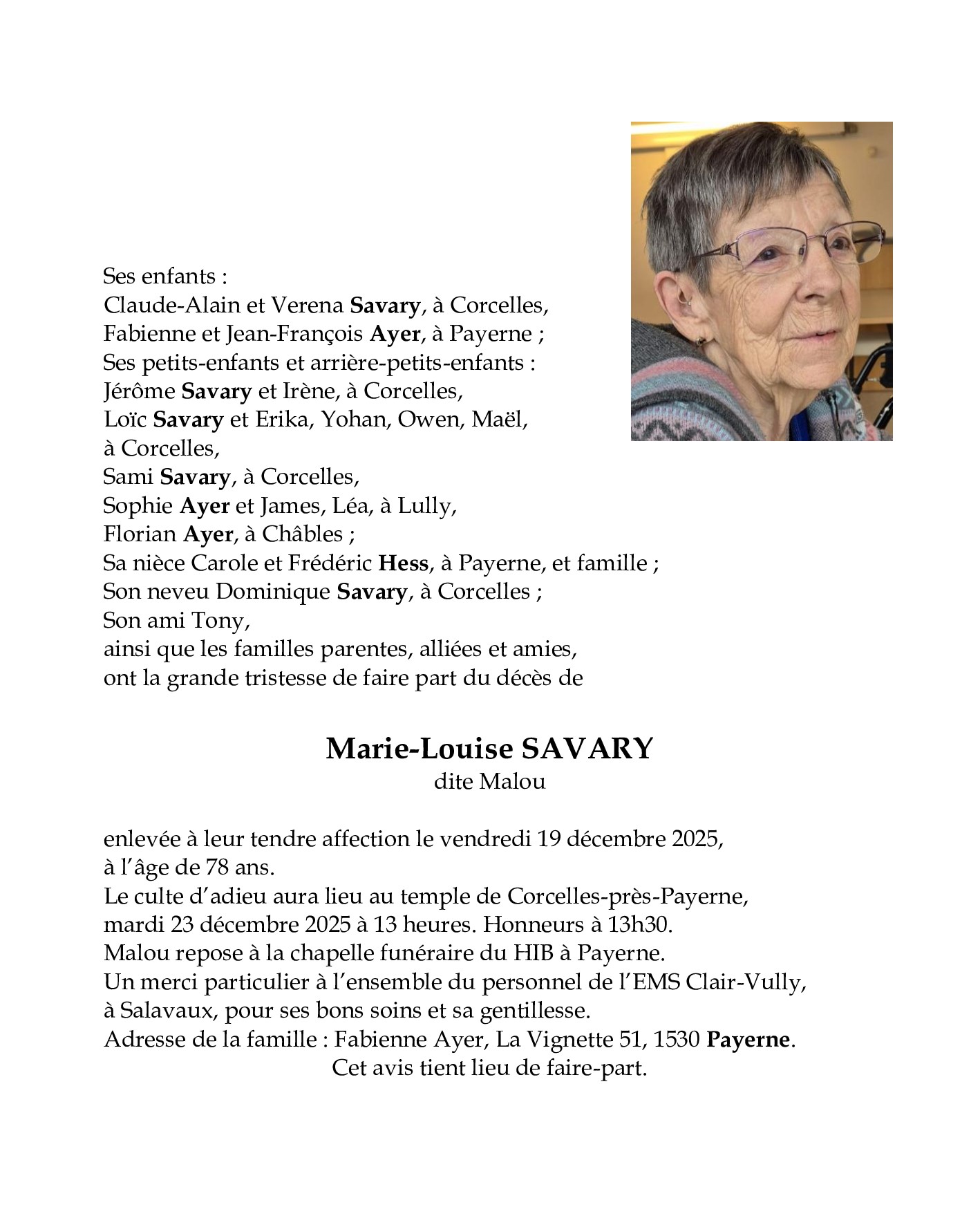 Avis mortuaires / Remerciements