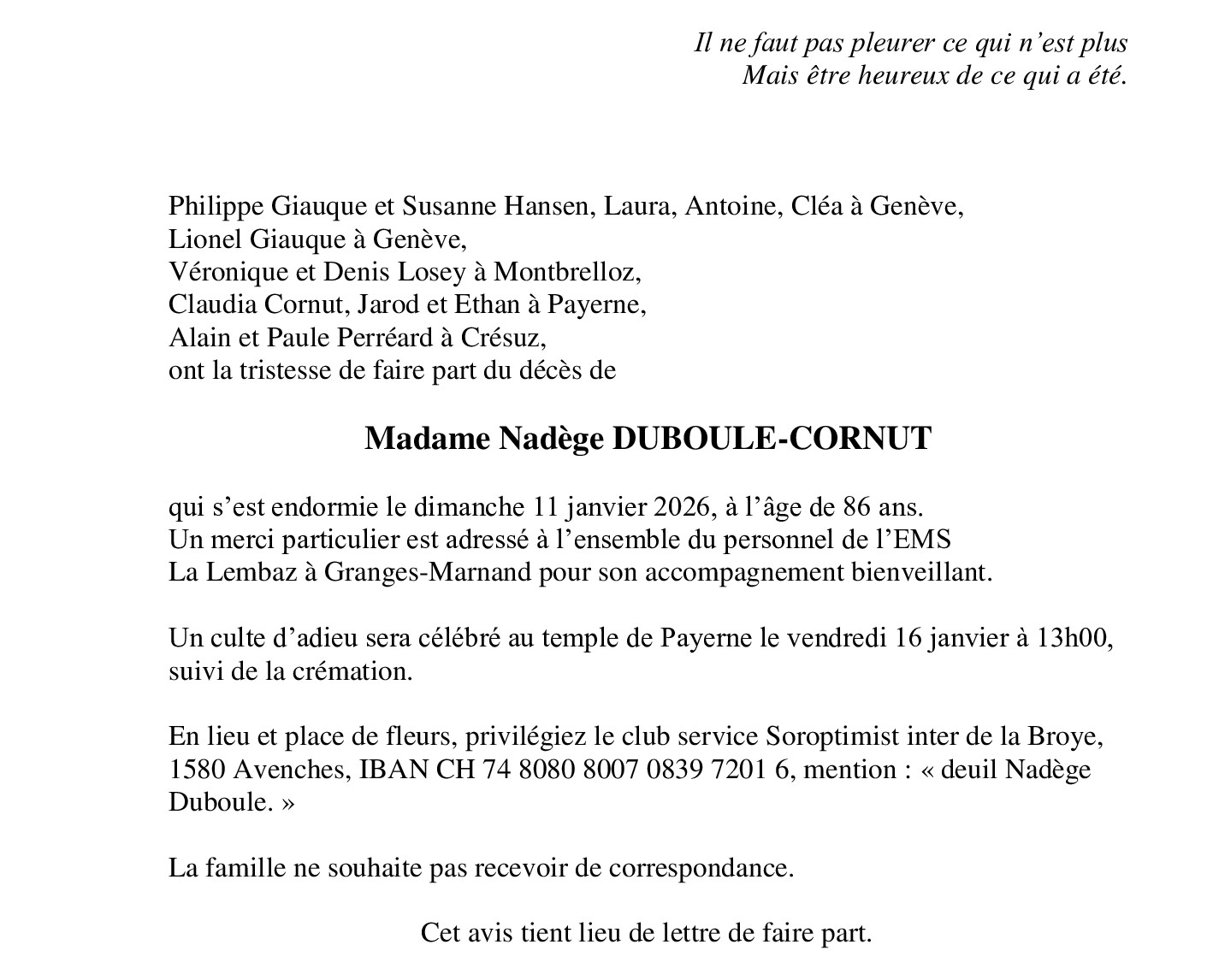 Avis mortuaire PFG