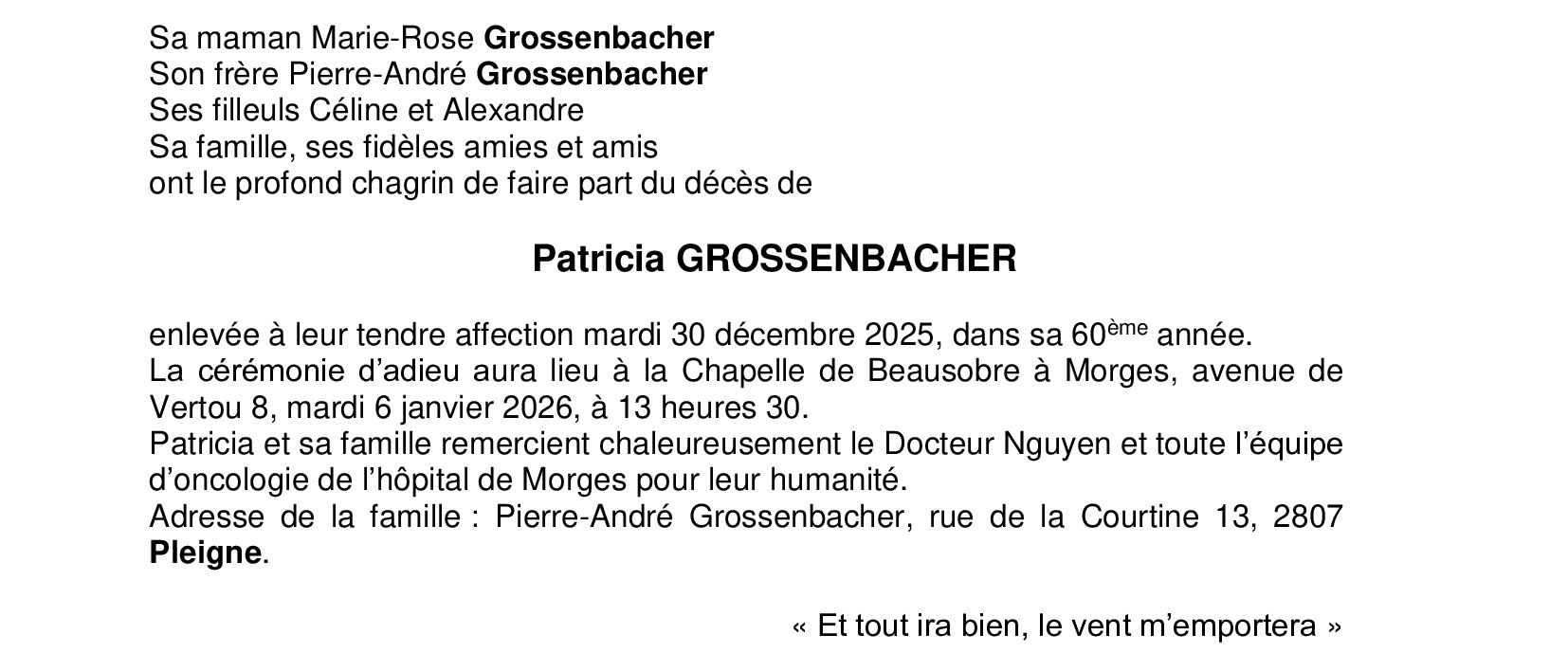 Avis mortuaire PFG