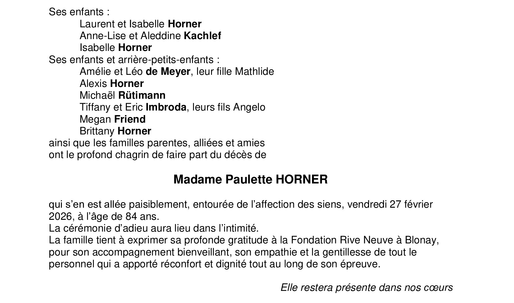 Madame Paulette HORNER