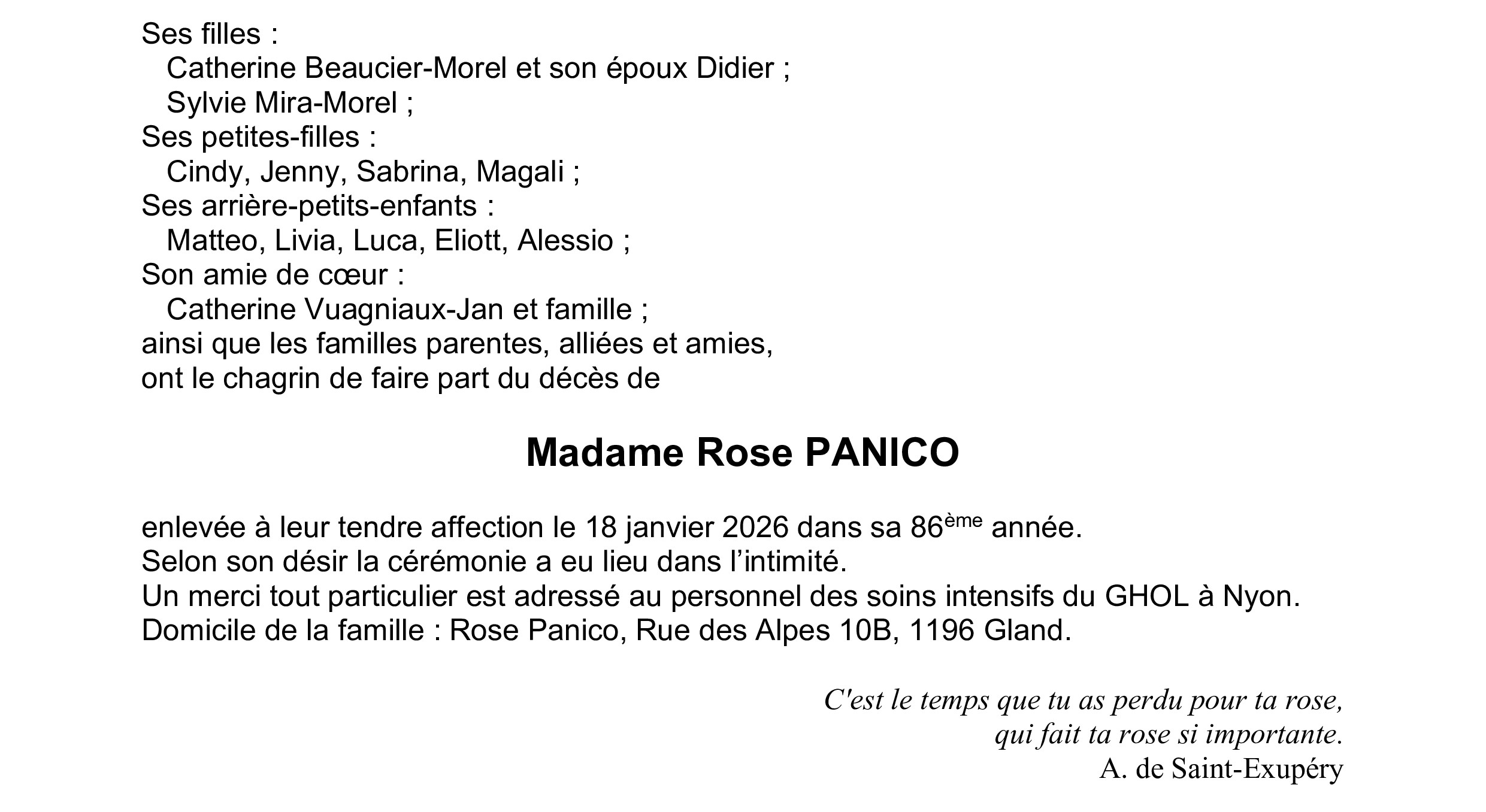Madame Rose PANICO
