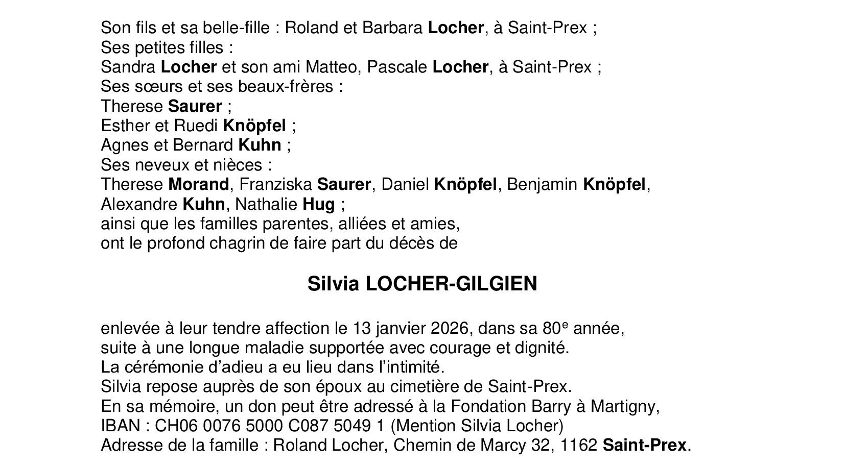 Madame Silvia LOCHER-GILGIEN