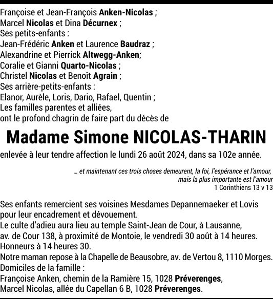 Madame Simone NICOLAS-THARIN