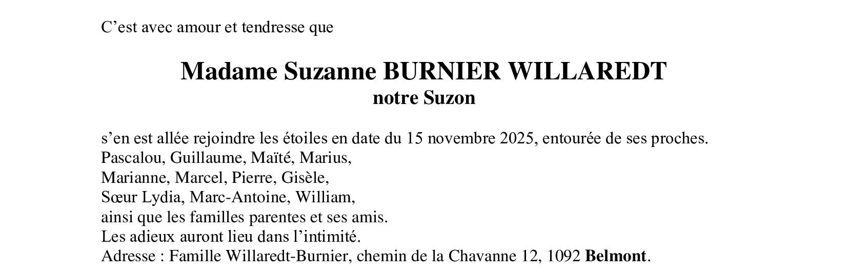 Madame Suzanne BURNIER WILLAREDT