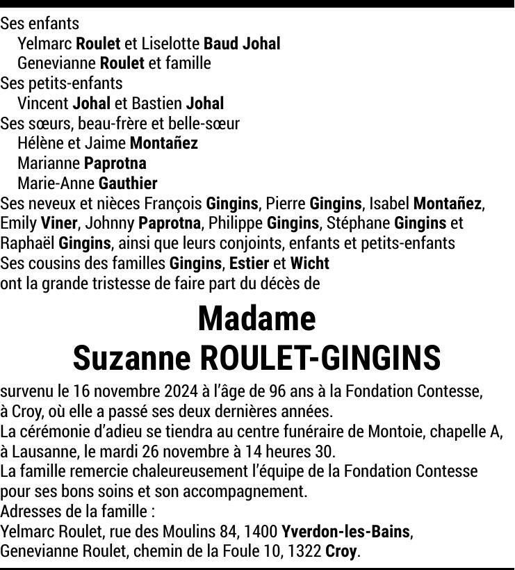 Madame Suzanne ROULET-GINGINS