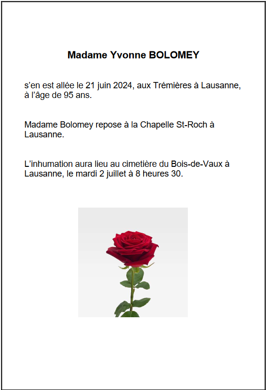 Madame Yvonne BOLOMEY