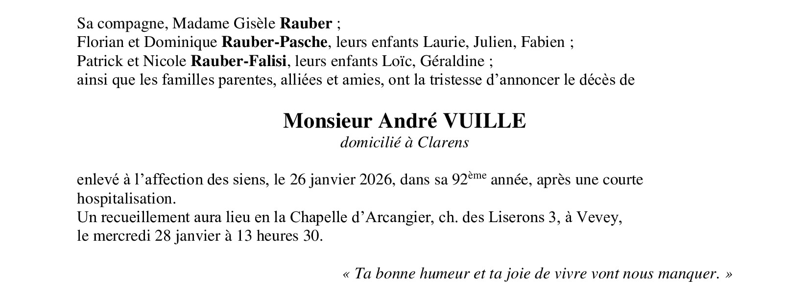 Monsieur André VUILLE