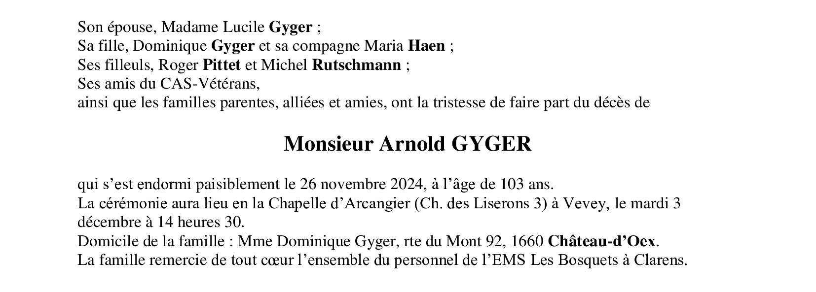 Monsieur Arnold GYGER