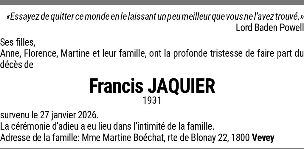 Monsieur Francis JAQUIER