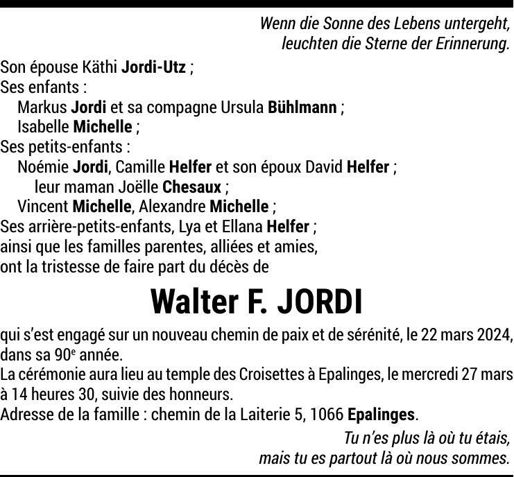 Walter F. JORDI 01 fév. 1935 - 22 mar. 2024 Avis mortuaire PFG Télecharger PDF Partager sur: Galerie PreviousNext PreviousNext
